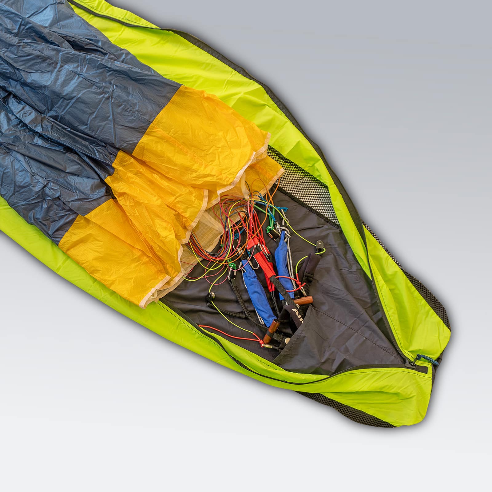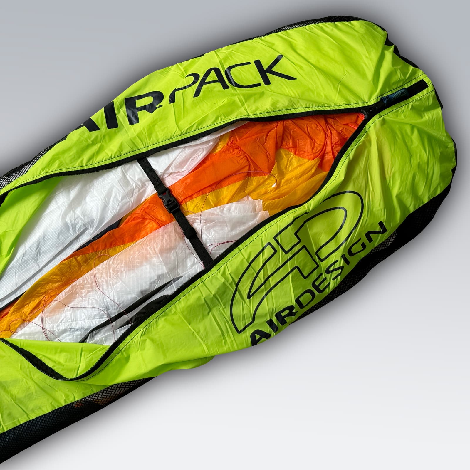Paragleiter der neuen Generation sollten nach dem Ziehharmonika-Prinzip gepackt werden. Der AirPack wurde so konstruiert, dass dein Gleitschirm einfach darin zu verstauen ist, und um ihm eine längere Lebensdauer zu gewähren. Auf beiden Seiten befinden sich eingenähte Netzteile für eine optimale Belüftung. Der AirPack ist mit einem Zwei-Wege-Reißverschluss zum Öffnen und Schließen in beide Richtungen ausgestattet. Für die Tragegurte ist eine Tasche im Inneren des Packsacks verbaut. Das Kompressionsband ist angenäht, damit es stets griffbereit ist und nicht verloren gehen kann.